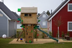 Auf einem 600 qm Grundstück steht das Haus Wasserelfe im ruhigen Hafendorf Zerpenschleuse. Der 400 qm große, hintere Teil ist komplett (hundesicher) umzäunt (1m hoher Zaun) und lädt mit seiner 30qm großen Terrasse, einem Spiel-Baumhaus mit Kletterturm, Rutsche, Schaukeln und über 25 qm Sandkasten sowie einer großen Rasenfläche zum Spielen ein.